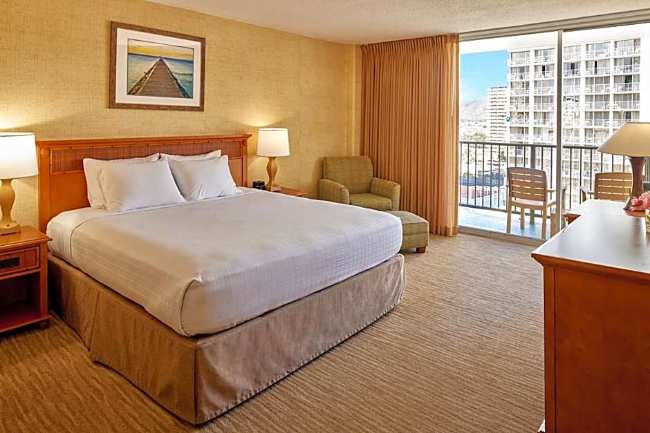 Featuring views of Waikiki’s neighborhood city lights, this air-conditioned room includes a flat-screen HD cable TV, private balcony, small fridge, coffee maker, electric hot water kettle(upon request), in-room safe, hairdryer and ironing facilities.